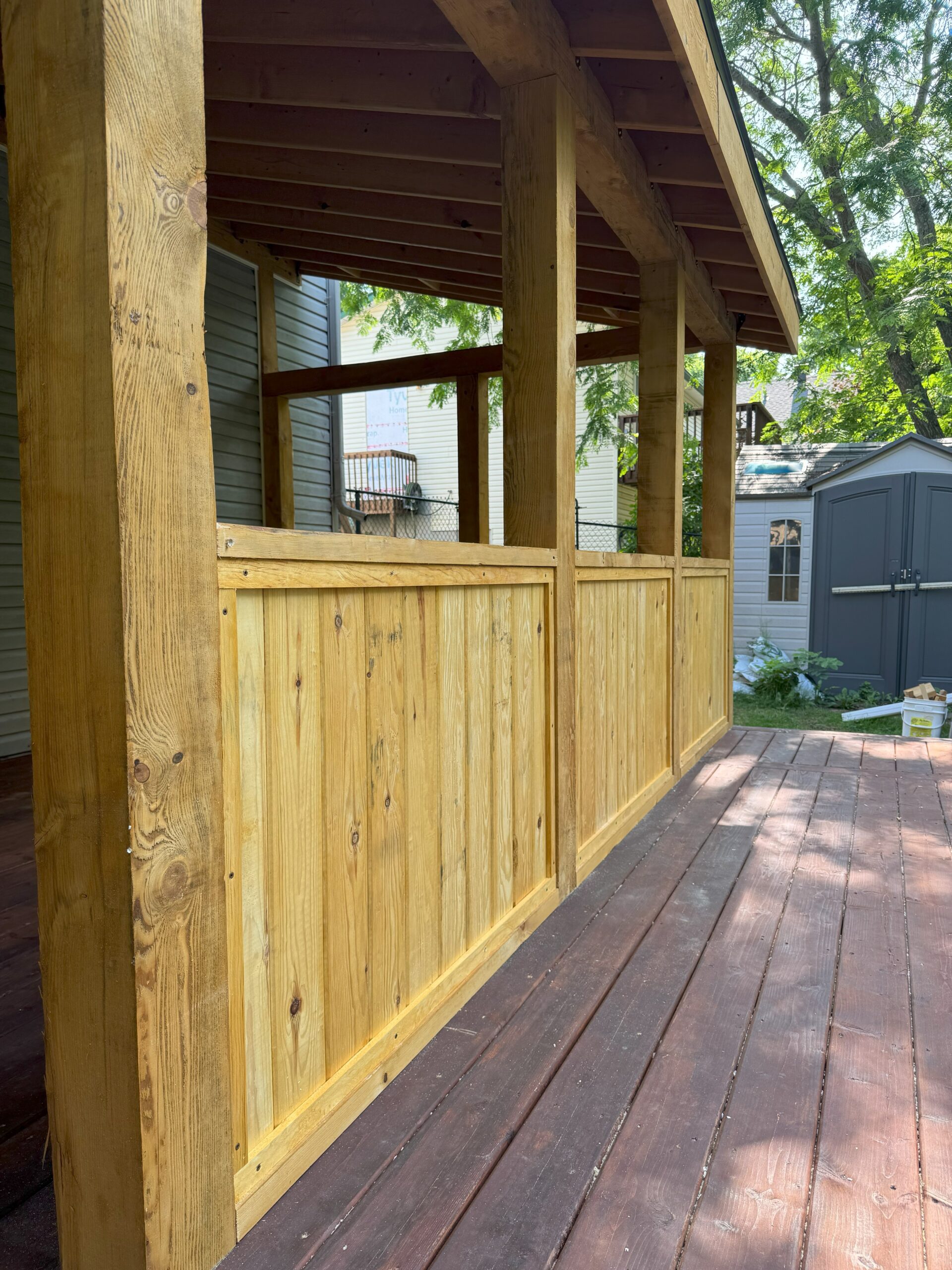 We build timber-frame pergolas and porticos for your property. We also build decks, sheds, fences, and the occasional renovation.